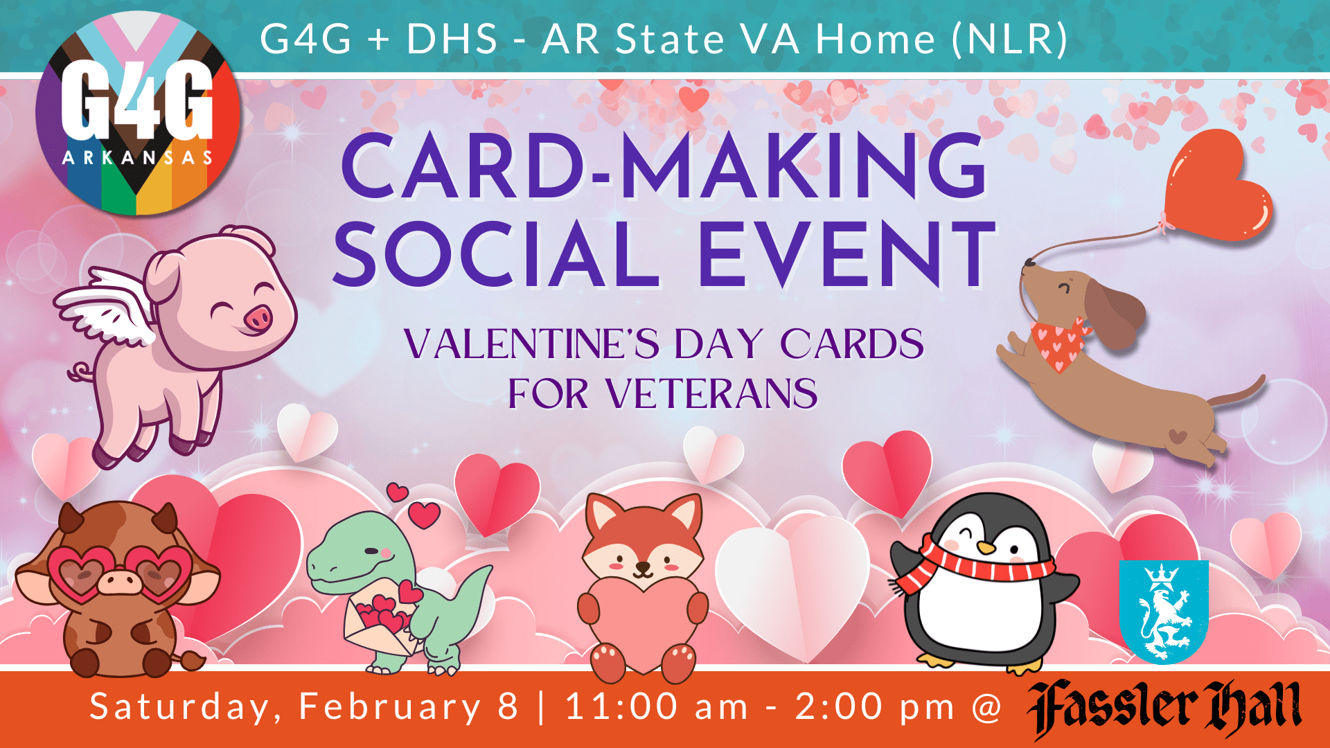 To celebrate Valentine’s Day, you’re invited to join Gay For Good Arkansas as we make holiday cards for the Arkansas State Veterans Home at North Little Rock (NLR), strengthen our community connections, and have a lot of fun!