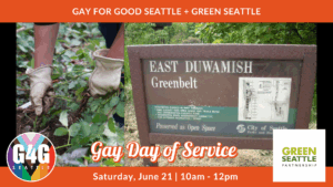 Join G4G Seattle as celebrate Pride Month with a Gay Day of Service! This volunteer event will be helping to take care of the forest along the East Duwamish neighborhood trail! We’ll be pulling and removing ivy, cutting back and digging out blackberry or planting new plants, and as always having a good time!